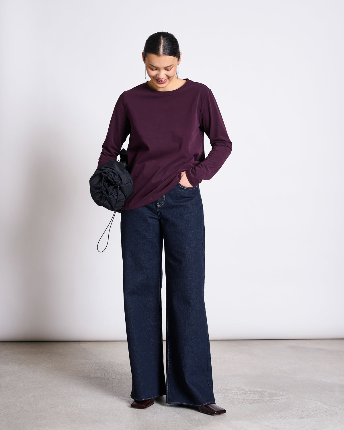 Let’s do loose fit.Our beautiful and basic longsleeve is called BOY. It’s loose fitted and looks a little bit like you’ve stolen it from your boyfriends wardrobe.Made from our signature very soft and elastic organic cotton fabric, that our supplier calls ‘Angel Skin’. You will know why as soon as you feel it.