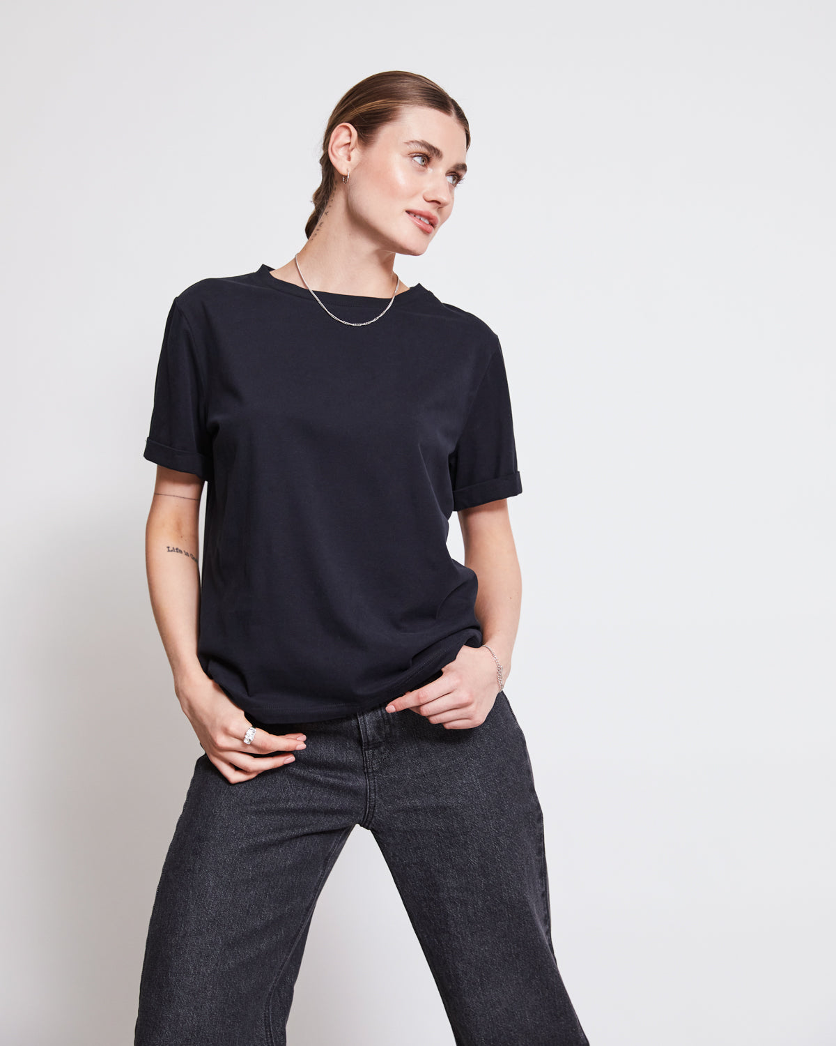 jan-n-june Women’s Brushed T-shirt Boy Black Gots
