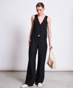 jan-n-june Women’s Linen Drawstring Pants Sjov Black