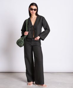 jan-n-june Women’s Linen Tie Blouse Skagen Dark Olive