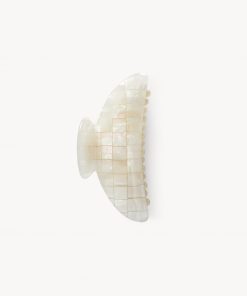 A double-walled hair claw designed to hold medium volumes of hair, handcrafted from Italian acetate with reinforced hardware. Recommended for all hair types and textures.Color: opalite shell checker Size: 1.75” x 3.5” inches. Price is for one clip.