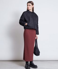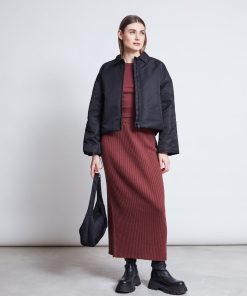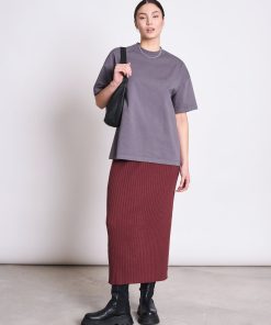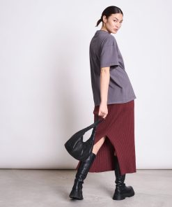 BEST SELLING SKIRTHi EBBA! Our knitted skirt EBBA is made of super soft organic cotton. The skirt features a rib texture and a rather tight fit although it really embraces your body type.It has a comfy elastic at the waist and is rather high waisted.Wear it with a casual cropped jumper or spice up a white tee with this midi skirt.EBBA is not only your companion for spring and summer. Thanks to its knitted structure, it’s the perfect skirt for layering in fall and winter too.Fashion twist (and also practical for your own flexibility): EBBA features a slit in the back.Please note:This garment is made of 100% cotton. We try to avoid unnecessary synthetic fibers, such as elastane, wherever possible. That is why this garment might stretch out and change the shape while wearing it. The good news: the style will be back in shape after washing. So, no panic – it’s just organic. Thanks for your understanding, dear!