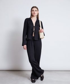 Tied up!We can not lie – we love ties and bows a lot at the moment. So we just had to come up with this cute new blouse KALUZ black, made of a smooth and “silk -like” EcoVero and MicroModal Mix. The blouse is relaxed fitted, with a classic color and two little tie, to fancy up the blouse.The mix of EcoVero and MicroModal, is super flowy and breathable. As a fancy extra, this composition makes the fabric a little shiny.