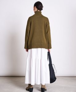 Stay cozy and stylish in our MUA turtleneck! Made with 100% organic cotton, this knitted jumper offers a soft touch and oversized fit for ultimate comfort. With the unique design of overlapping shoulders and a big turtleneck, you’ll stand out in a crowd. And of course – it’s GOTS certified. Please note: This garment is made of 100% cotton. We try to avoid unnecessary synthetic fibers, such as elastane, wherever possible. That is why this garment might stretch out and change the shape while wearing it. The good news: the style will be back in shape after washing. So, no panic – it’s just organic. Thanks for your understanding, dear!